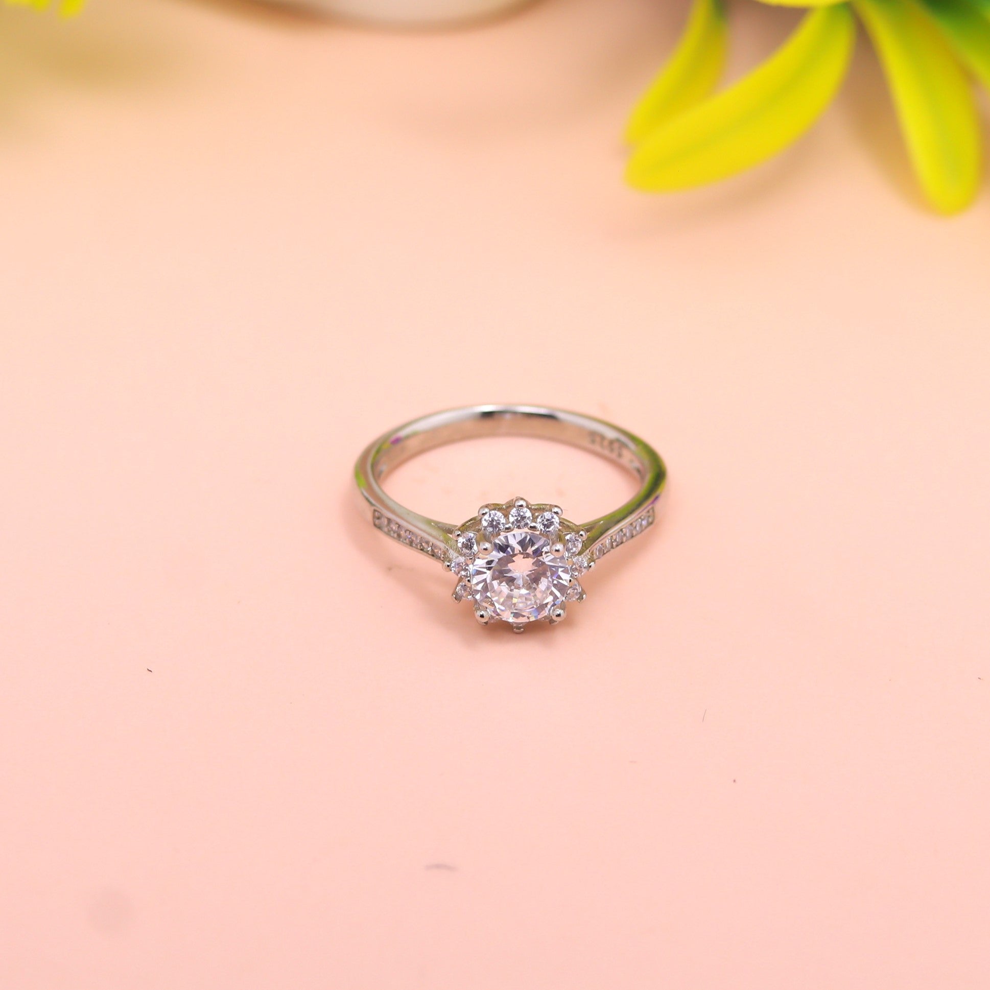 The Classic Halo Solitaire Silver Ring is a timeless expression of elegance and romance. Crafted in 925 sterling silver, this ring features a brilliant round-cut center stone encircled by a delicate halo of sparkling clear crystals. The slim band is accented with pavé-set stones, adding extra brilliance and a refined finish. This ring is perfect for engagements, anniversaries, or meaningful celebrations.