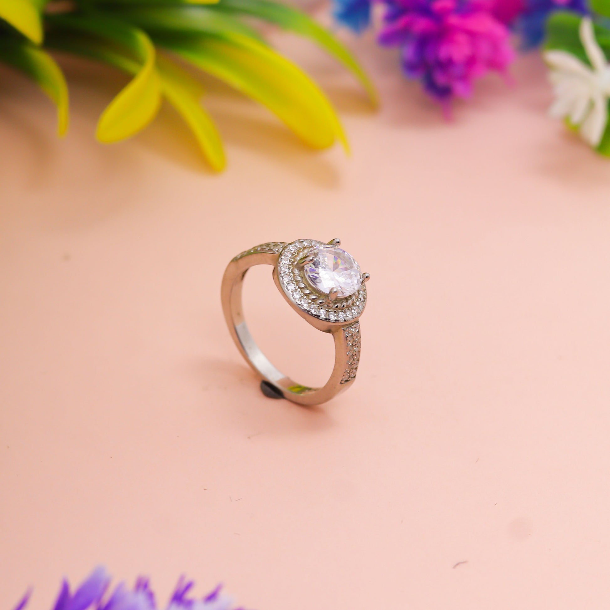 The Elegant Halo Solitaire Silver Ring is a timeless piece of jewelry that blends classic beauty with modern sophistication. Featuring a dazzling round-cut center stone surrounded by a delicate halo of smaller stones, this ring offers exceptional brilliance and sparkle. The slim pavé-set band enhances its luxurious appeal, making it a perfect choice for engagements, weddings, anniversaries, or special occasions.