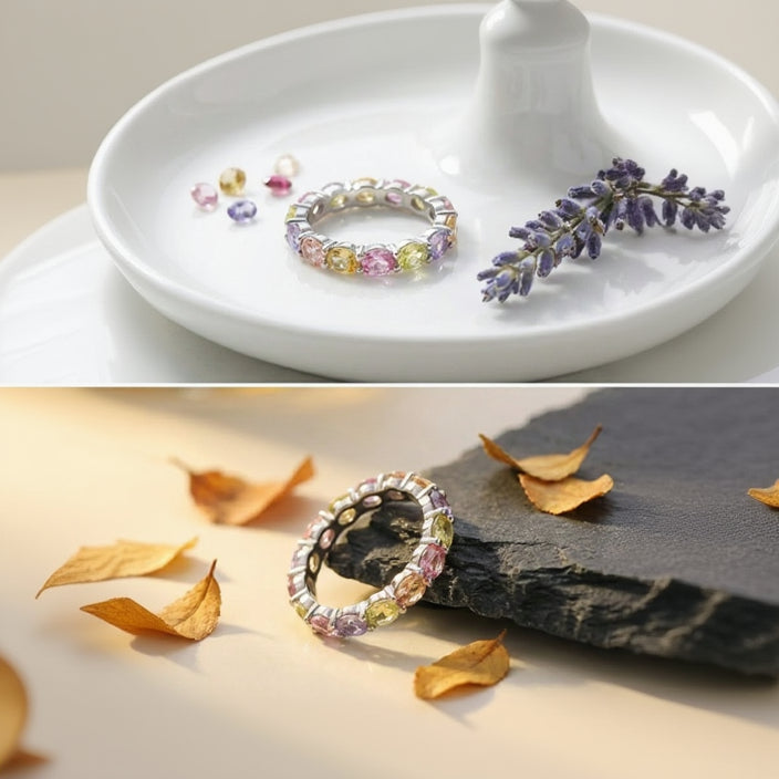 The Pastel Rainbow Eternity Silver Ring is a vibrant and elegant piece designed to celebrate color and joy. Crafted in premium 925 sterling silver, this ring features a continuous circle of beautifully set pastel-colored stones in soft shades of pink, yellow, green, and lavender. The full eternity design symbolizes endless beauty and harmony, making it a perfect statement ring for everyday wear or special occasions.